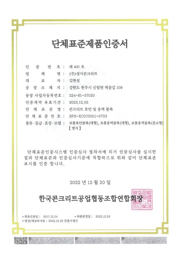 옹벽_단체표준제품인증서 페이지 정보 작성자 최고관리자 댓글 댓글 0건 조회Hit 12회 작성일Date 25-08-21 19:59 본문 옹벽_단체표준제품인증서 목록 이전글어도블록 및 어도시공방법 25.08.21 다음글수로관_KS제품인증서 25.08.21 댓글 0 댓글목록 등록된 댓글이 없습니다.